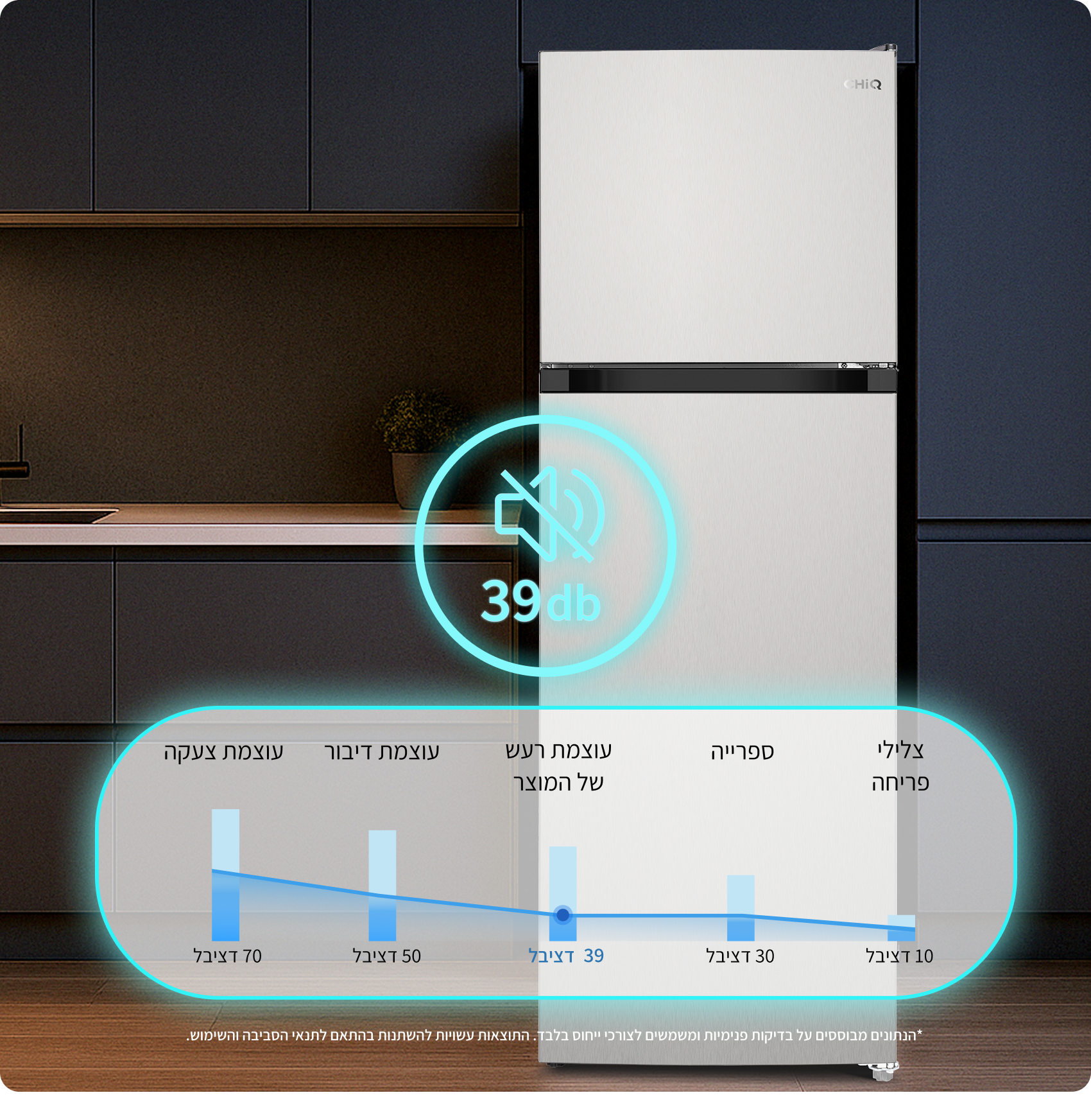 המקרר פועל בעוצמה שקטה במיוחד של 41 דציבלים בלבד – לתחושת שקט מוחלט ביום ובלילה.
