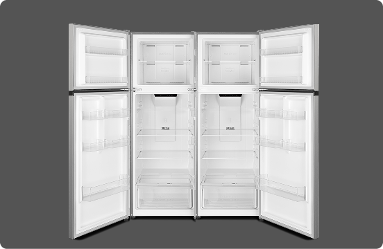 בידוד ואקום דק יוצר יותר מקום בפנים. העיצוב עם דלתות מוצלבות מארגן חטיפים, ארוחות ומשקאות באזורים ייעודיים – מלאו את המקרר בלי לחץ, ושמרו על טריות הטעמים.