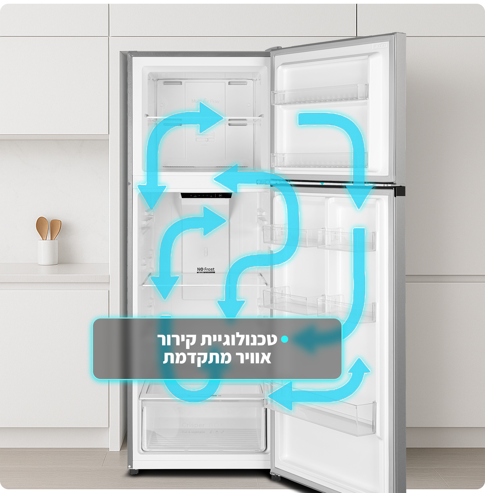 קירור באמצעות סירקולציה של אוויר קר שומר על פנים המקרר טרי וללא קרח, מה שמבטיח שמירה אחידה יותר על טריות המזון ומקל על החיים.