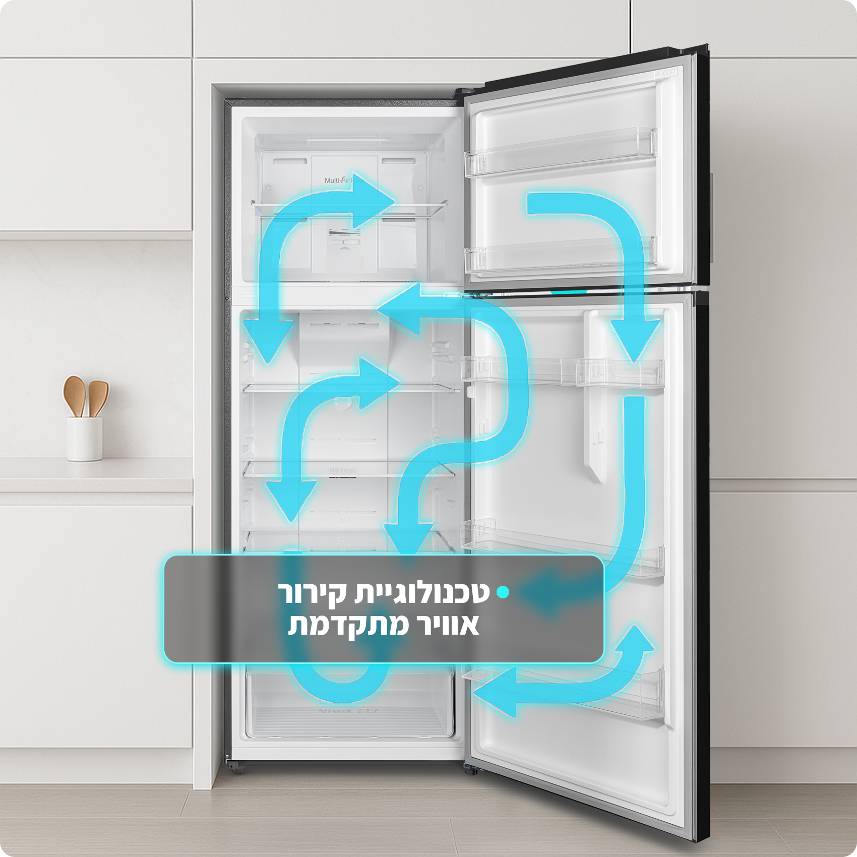 עם נפח ענק של 580 ליטר, תוכלו ליהנות ממקום אחסון מרווח, נגיש ונוח לכל סוגי המזון – מושלם למשפחות ולמי שאוהב סדר וארגון במטבח.