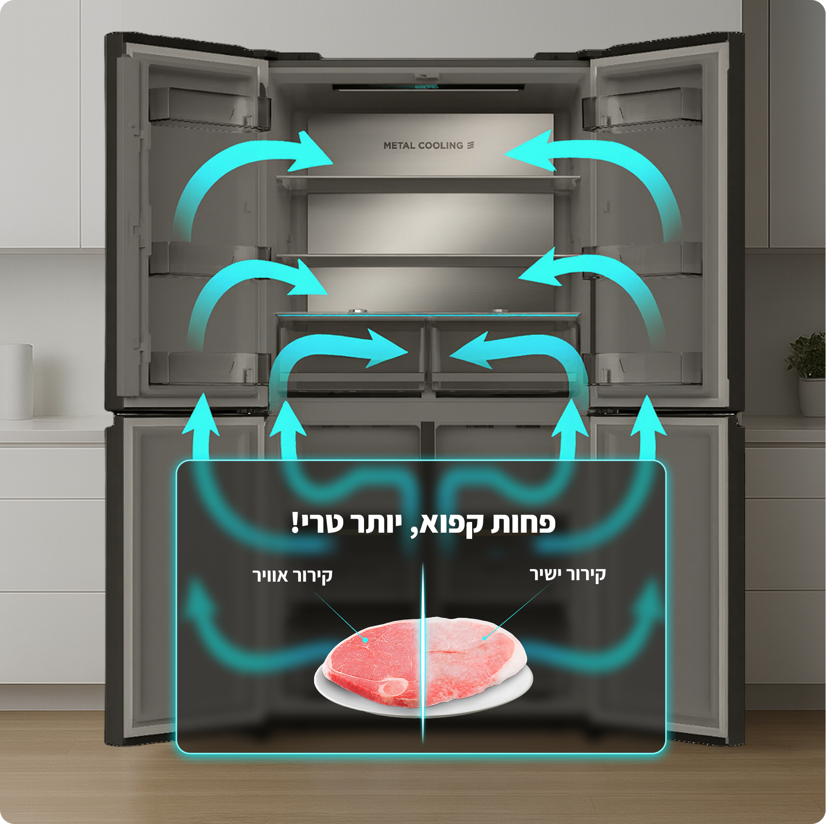 טכנולוגיה ייחודית המפזרת זרמי אוויר קר ומונעת הבדלי טמפרטורות ו"אזורים מתים" בכל חללי הקירור, וכך שומרת על הטעם ועל טריות המוצרים המאוחסנים.