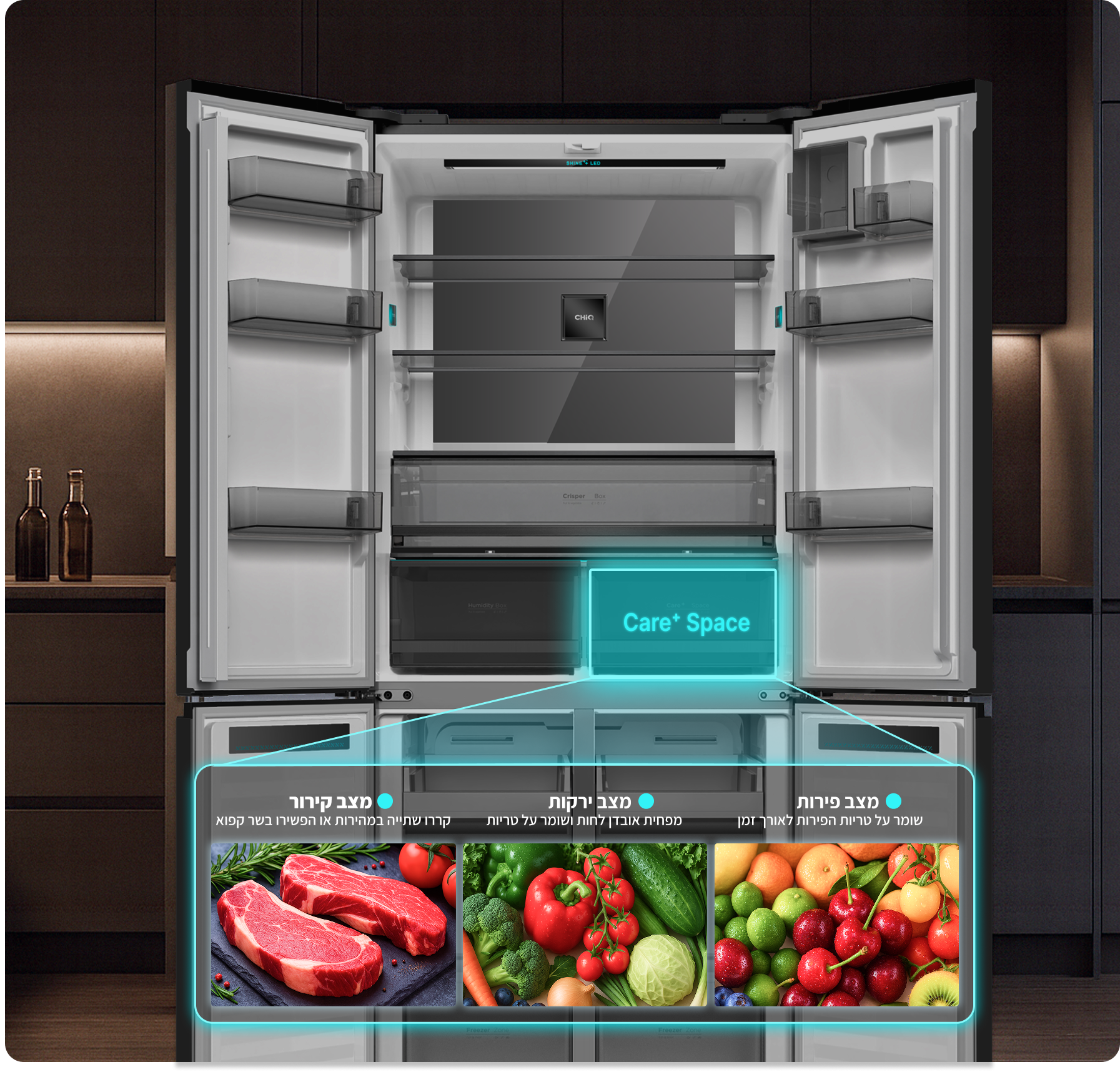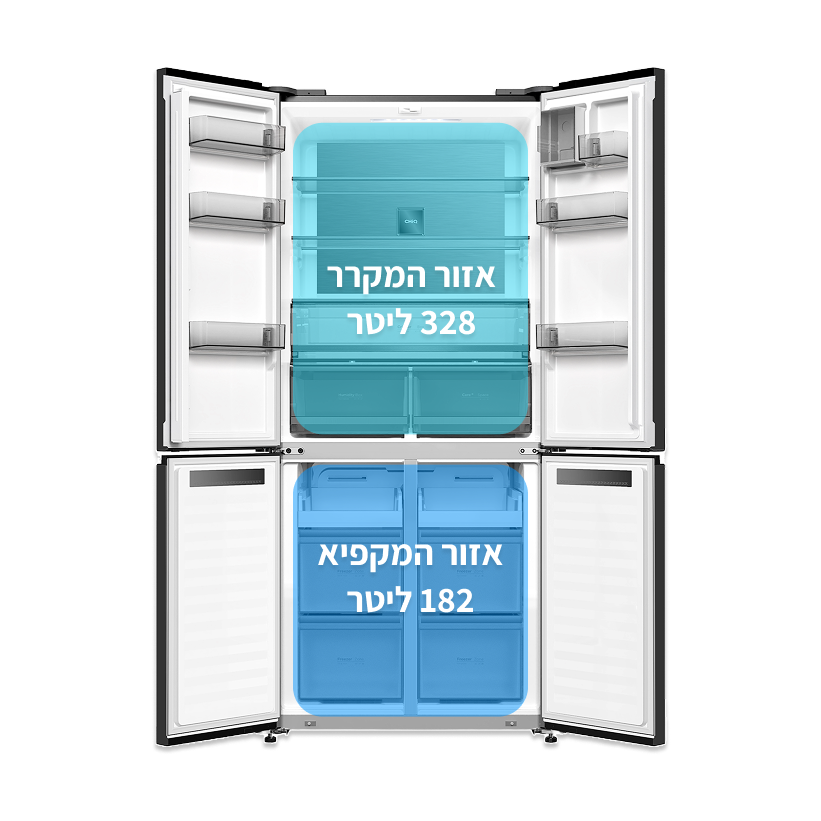ארבעה אזורים נפרדים לאחסון משקאות, ירקות, מזון קפוא ועוד.